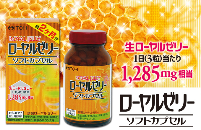 ローヤルゼリーは、働き蜂から分泌される女王蜂だけが食する貴重な物質です。1日当たり生ローヤルゼリー1,285mg相当を配合。気力あふれる毎日を送りたい方、美を追求したい方に。飲みやすいソフトカプセル。