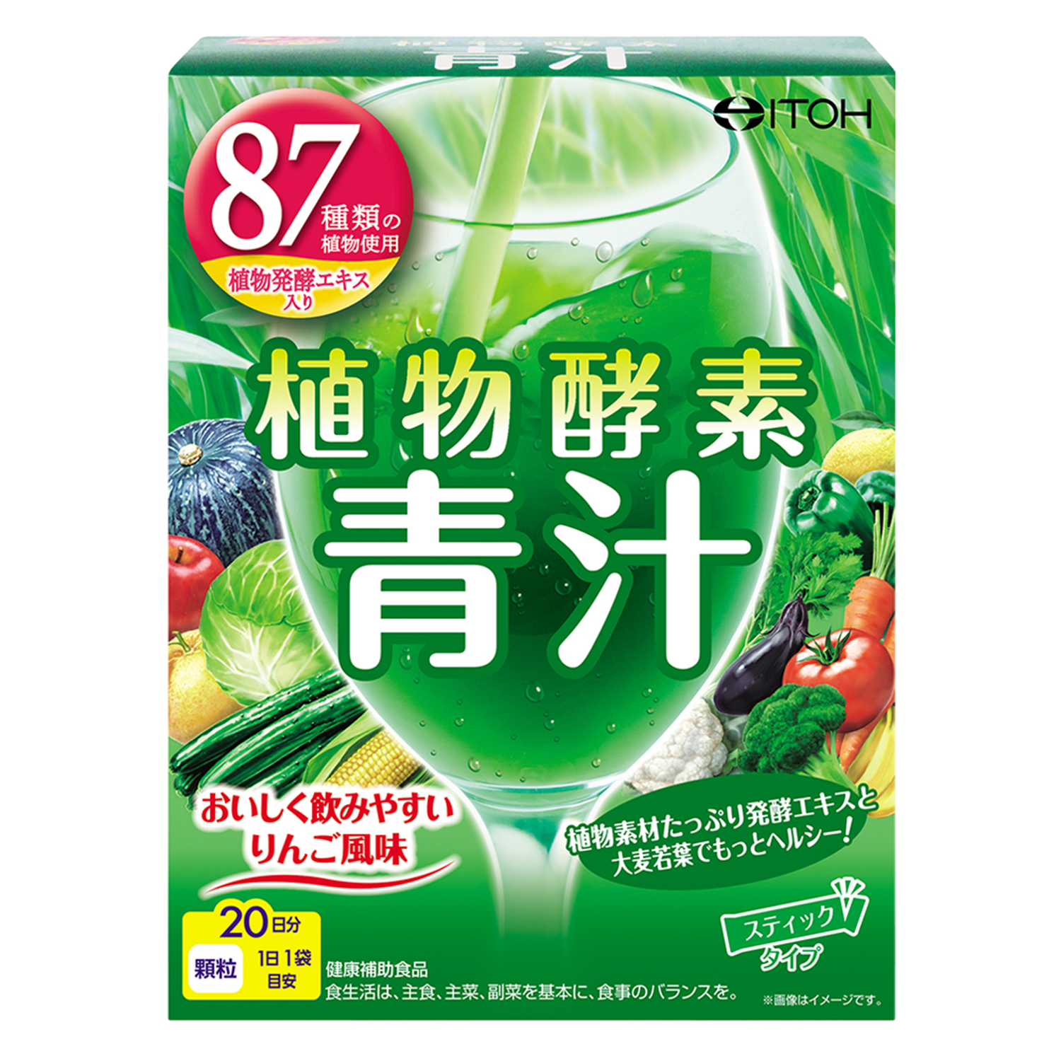 大麦若葉末と87種の植物を使用した発酵エキスを配合。