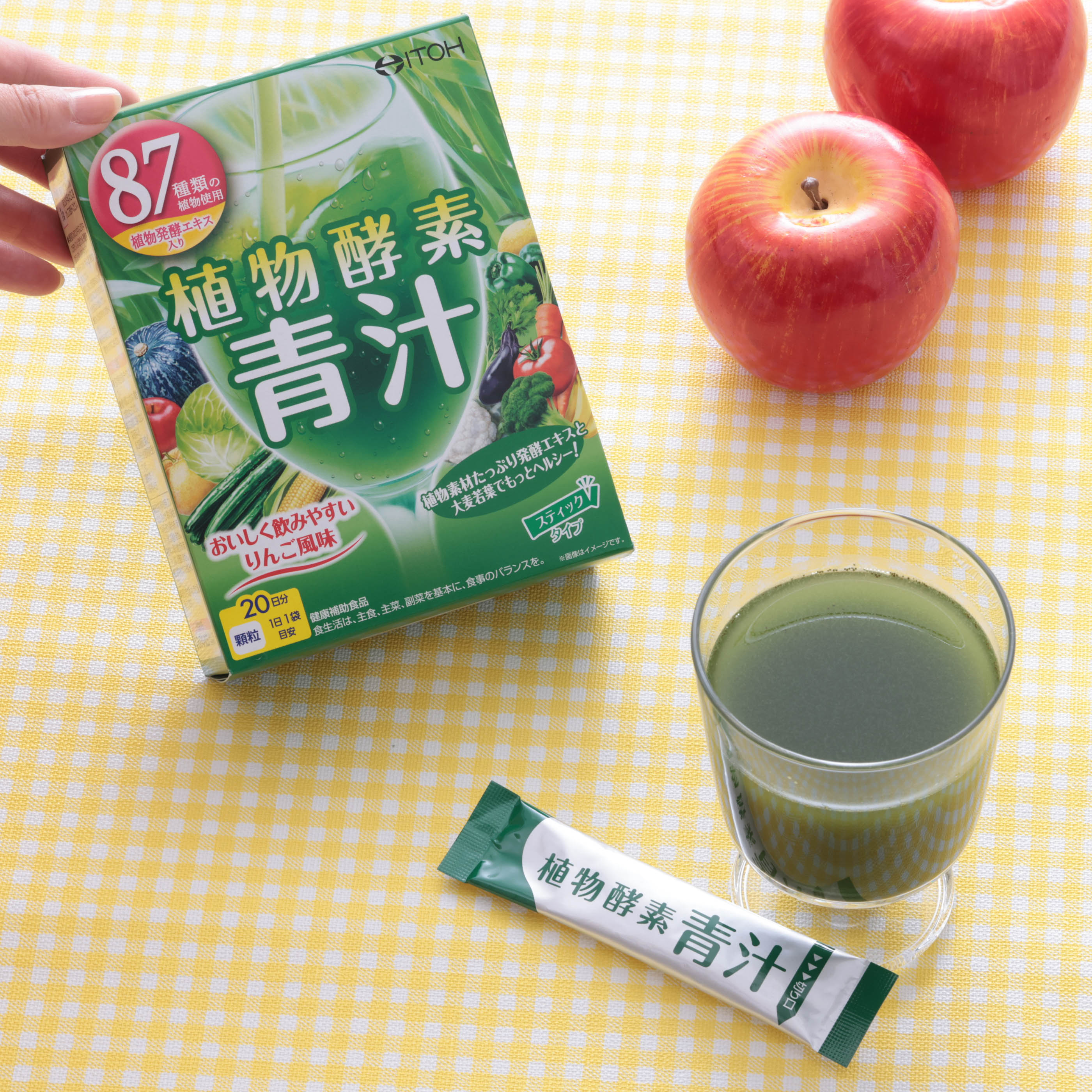 すっきり飲みやすいりんご風味のヘルシーな青汁です。