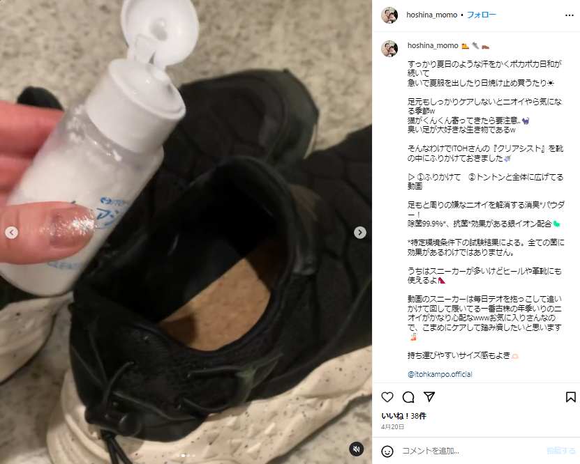 ランニングシューズ👟 私、汗かきだから、ランニングシューズも汗でいや〜な臭いがするの🤢 でもこの消臭パウダーは一足10回ほど振りかけておくだけ、そのまま履けるし、爽やか〜👟 #PR #井藤漢方製薬株式会社 #井藤漢方製薬 #クリアシストスエット #消臭パウダー #ニオイ対策 #monipla #itohkampo_fan 2025/01/02