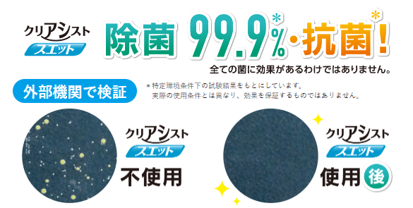 *特定環境条件下の試験結果による。全ての菌に効果があるわけではありません