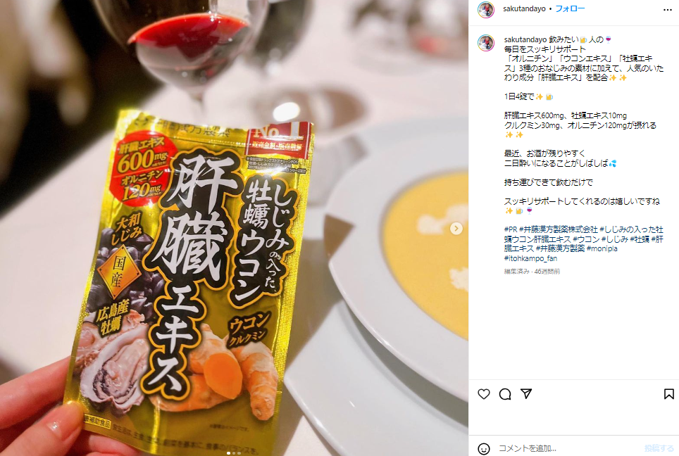 #しじみの入った牡蠣ウコン肝臓エキス #しじみの入った牡蠣ウコン #monipla #itohkampo_fanのハッシュタグをつけて投稿してください。