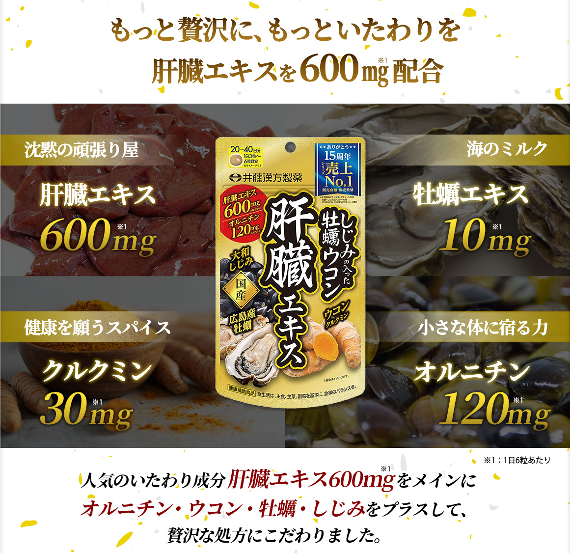 「オルニチン」「ウコンエキス」「牡蠣エキス」