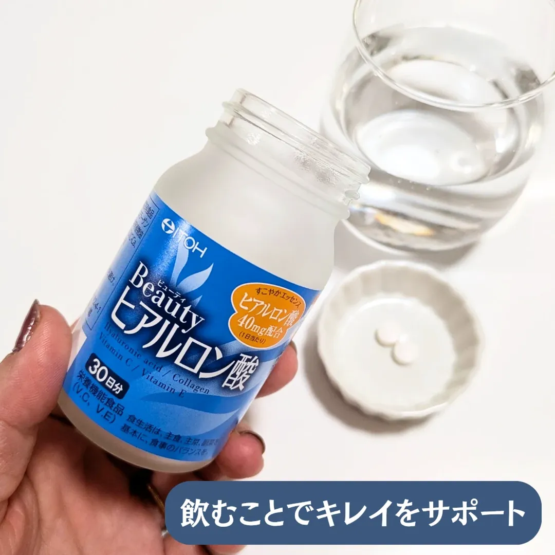 ビューティヒアルロン酸✨ 美容にうれしいヒアルロン酸にコラーゲン、ビタミンC、ビタミンEをプラスしたサプリメント💡 飲むことでみずみずしくハリのあるキレイをサポートしてくれるそう🩷 小さな小粒のタブレットを1日4粒🎵 クセがないので飲みやすく、続け易いのがポイント✨ 私は朝のルーティーンにして飲み忘れないようにしています🍀 飲むことで、スキンケアや予防の意識も高められて私には大切な習慣になってる🤗 #PR #井藤漢方製薬株式会社 #井藤漢方製薬 #ビューティヒアルロン酸 #ヒアルロン酸 #コラーゲン #ビタミン #monipla #itohkampo_fan