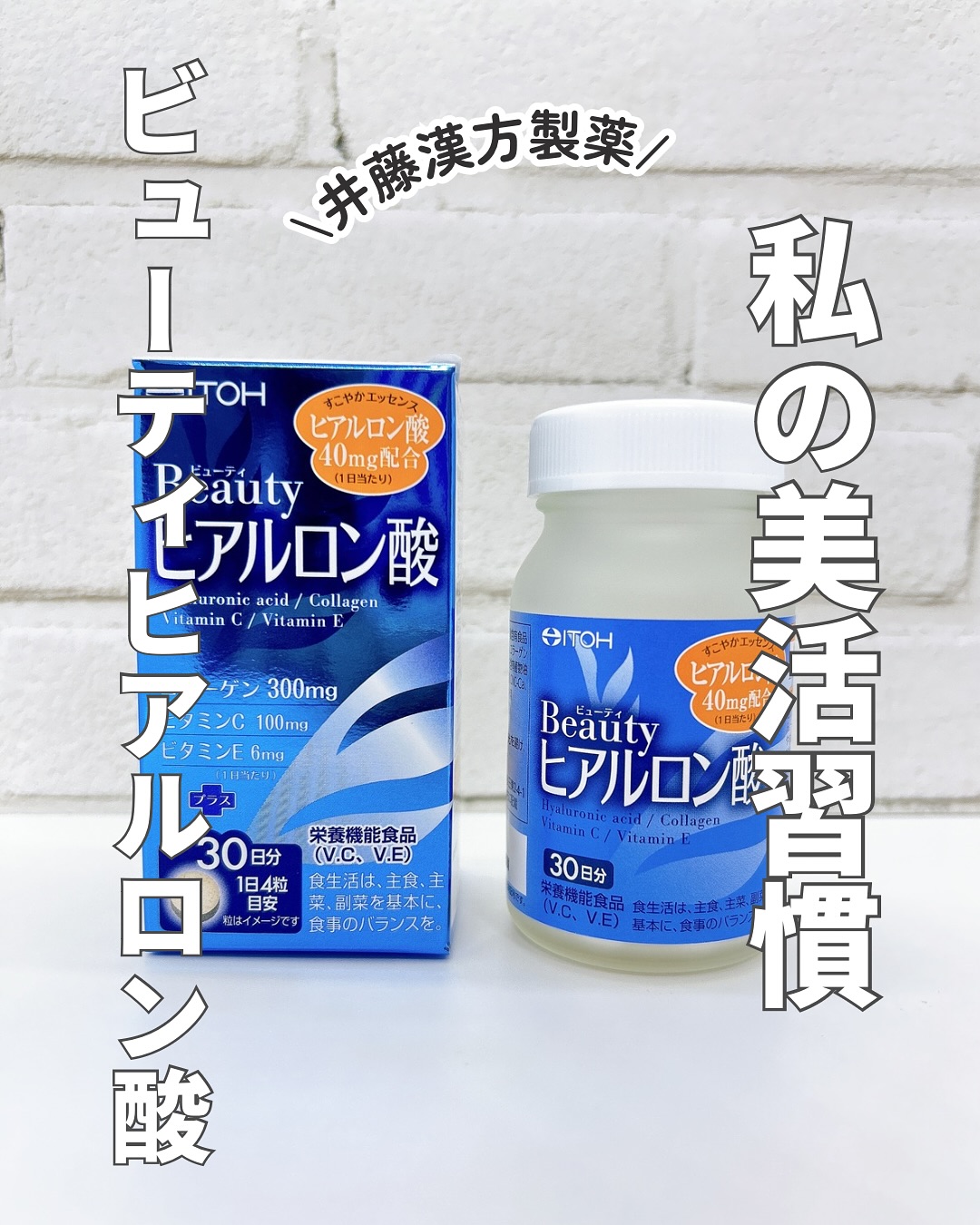 井藤漢方製薬 ビューティヒアルロン酸 @itohkampo.official 様 最近はスキンケアだけじゃ肌の潤いが足りてなくて インナーケアも始めてみました💗 このサプリは 美容にうれしいヒアルロン酸にコラーゲン、 ビタミンC、ビタミンEをプラスしていて みずみずしくハリのあるキレイをサポートしてくれるみたい ※栄養機能食品(ビタミンC、ビタミンE) 1日4粒なので、朝昼夕寝る前に飲んでいます😆 120粒入りなのでおよそ1ヶ月分 粒が小さく、匂いも感じないので飲みやすかったです! 内側から綺麗になりたい方は 是非チェックしてみてね💕︎ #PR #井藤漢方製薬株式会社 #井藤漢方製薬 #ビューティヒアルロン酸 #ヒアルロン酸 #コラーゲン #ビタミン #monipla #itohkampo_fan