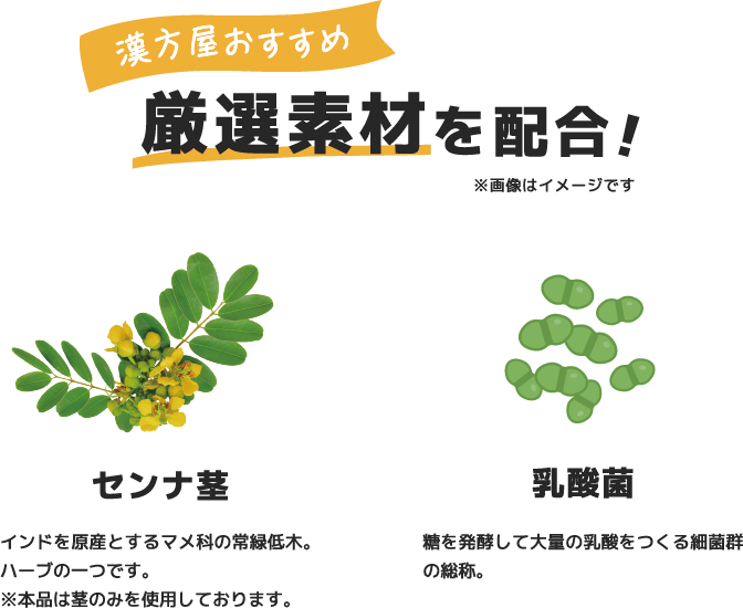 1日当たりセンナ茎エキス末400mg、乳酸菌1000億個配合