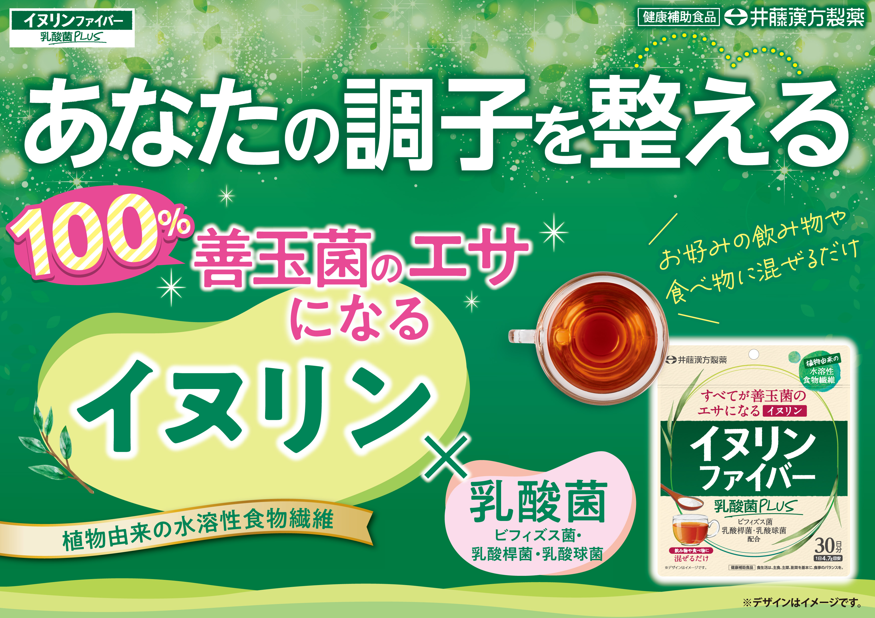100%善玉菌のエサになる水溶性食物繊維の一種である“イヌリン”と、