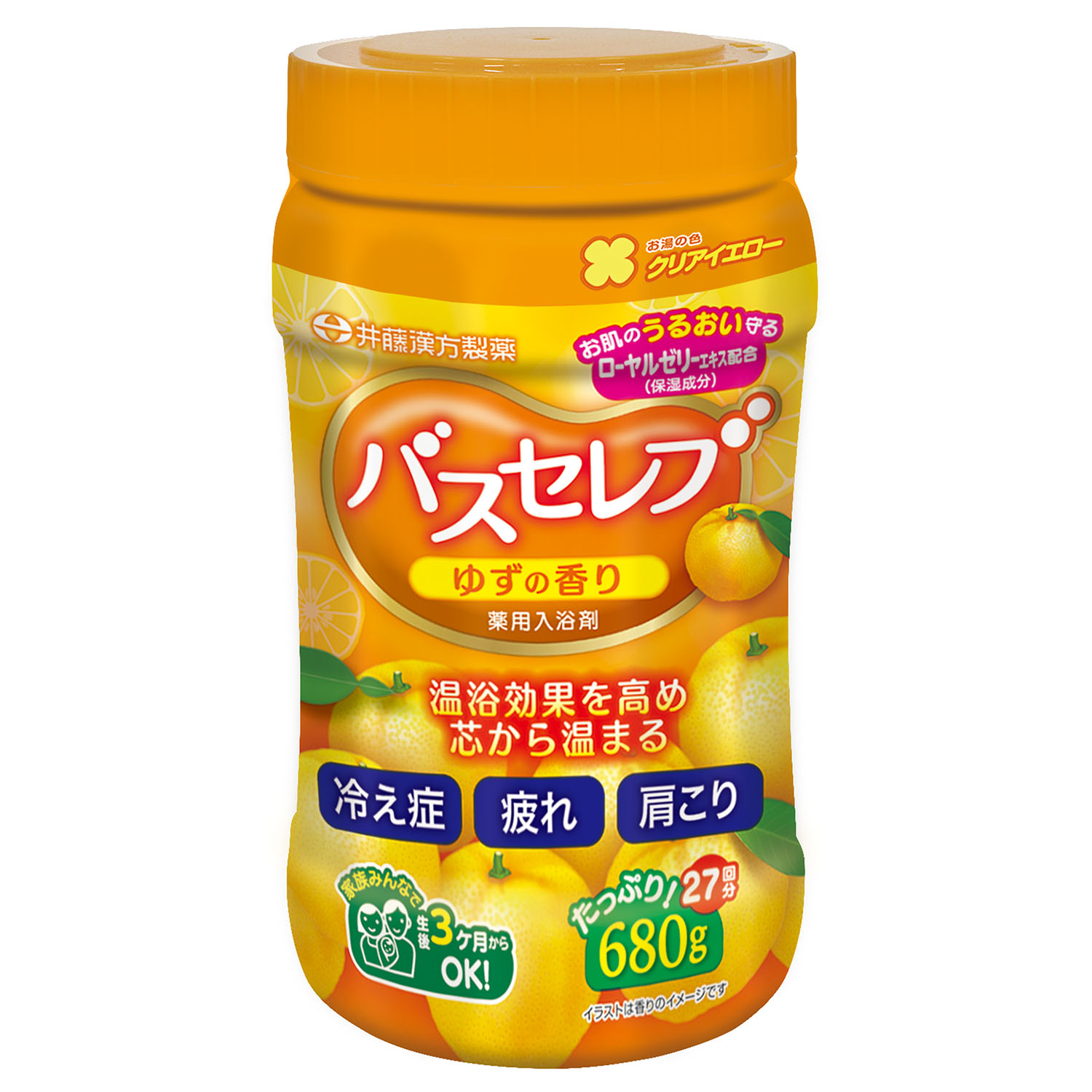生後3ケ月以降の赤ちゃんと一緒に入浴できる、家族みんなにやさしい入浴剤です。クリアイエローの湯色。