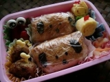 娘のお弁当に、お稲荷さんで犬のデコ弁当を作りました[るんるん] いなりずし 卵焼き&キュウリ 大根と人参のマヨ和え ハンバーグ いちご お稲荷さんは食べやすいようにラップに包んでしまったので 写真がちょっと[冷や汗] でも、気に入ってくれて「美味しかった」 と空っぽで帰って… 2015/02/01