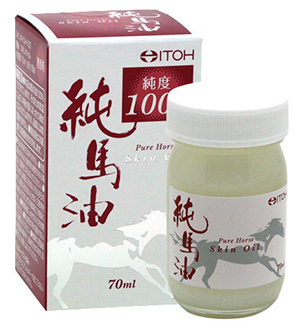 純度100%の馬油だから、べたつかず素早くしみ込む使用感!