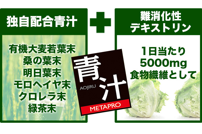 メタプロ青汁=6種類の独自配合青汁+難消化性デキストリン