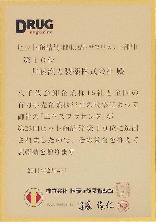 第23回ドラッグマガジン社が選ぶ、その年のヒット商品賞に、