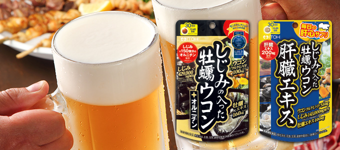 大地の恵みを含んだ「ウコン」と大海の恵みを含んだ「牡蠣」「しじみ」。3種のいたわり成分に加え、1日当たりしじみ約150個分のオルニチンを配合した、楽しい大人の時間と健やかな日々を応援するサプリメント。飲みやすい小粒(糖衣)タイプです。