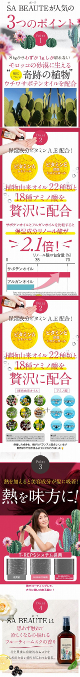 新感覚ヘアエッセンス『SA BEAUTE(サボーテ)ヘアオイル』お試しさせて頂きました❣️ ウチワサボテンオイルは8kgから、たった1gしか取れない希少なオイル配合😲✨ さらにビタミンA・E植物由来天然オイル22種類、18種アミノ酸配合。 プッシュ式のボトルは、サボテン🌵デザイン。 テクスチャーは、サラッとした軽めのオイルです。 私のミディアムの長さだと2プッシュくらいでOK‼️ アウトバスでオイルをつけてドライヤーで乾かすのはもちろん!このオイルは熱を味方にするアイテム✨ 熱でのヘアダメージが気になっていたけど、むしろ熱を加えることでコーティングし髪の補修や保湿するなんて素晴らしい👏😳✨ ストレートアイロンを使うと、特にまとまりの良いサラッサラでツヤのある髪に🥰 フルーティムスクの香りは甘めで女性らしい良い香り😍 気になる方はチェックしてね❤ 100㎖♡4980円 https://shop.ichiban-boshi.com/smp/user_data/sabeaute.php #サボーテ #sabeaute #ツヤ髪 #monipla #itty_fan #韓国コスメ #美容好き #美容好きさんと繋がりたい #セルフケア #アンチエイジング #美髪づくり #フォロミー #相互フォロー #イイネ返し 2021/11/04