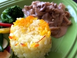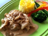 サフランライスとホワイトペッパー入りのポリチーニ香る豚肉とキノコのクリームソースでカフェ風ワンプレートごはんを作ってみた♪ 2016/03/31