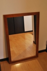 天然木を使った壁立てかけミラー。当店の人気商品です。