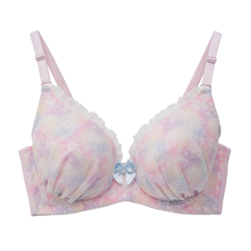 花柄シフォン×チュールレース ワイヤーブラジャー<ピンク>