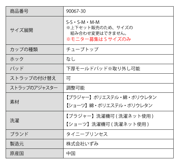 モニター募集サイズはS-SまたはS-Mサイズのみとなります。