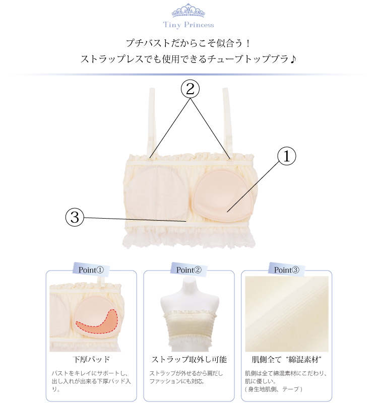 チューブトップブラ.ショーツ👙 こちらはフリルがついたとても便利なチューブトップブラです😌💕 肩のストラップが取り外し可能! 肩見せのお洋服に合わせることができます👗 下厚パットが付きなのでバストをしっかり支えてくれるので、着け心地がとてもいいです😍✨ . フリルがとても可愛いのもポイントです❤️ . 締めつけ感もなく、身体にしっかりフィットします! 夜、寝る時にも使ってます🌠 今からの時期、大活躍なので是非チェックしてみてください🌴☀️ . . #izumibodylabo #タイニープリンセス #tiny_princess #monipla #izumibodylabo_fan 2019/05/12