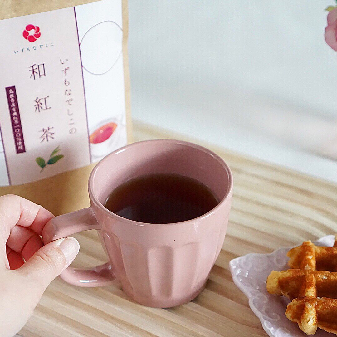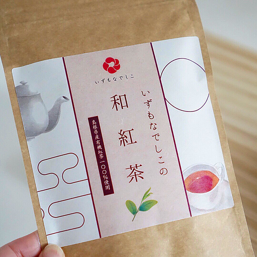 植物性堆肥を使って有機栽培した島根県産の有機紅茶を使用した「いずもなでしこの和紅茶」。茶葉本来の甘みとうまみがす~っとカラダにとけ込むような味わいが魅力です。ミルクティーやしょうが紅茶にしてもおいしくいただけます。