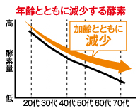 しかし、体内で作られる酵素の量には限界があり、20代をピークに、どんどん減少してしまうのです。