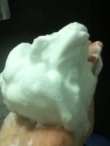 『もずく生せっけん、デビュー』。クリーミーな弾力泡。