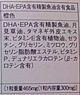 DHA・EPA含有精製魚油、月見草油、タマネギ外皮エキス末、ビタミンE含有植物油、ゼラチン、 グリセリン、ミツロウ、グリセリン脂肪酸エステル、ビタミンP、デュナリエラカロテン(β-カロテン含有)