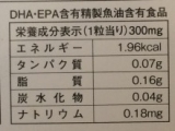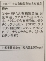 DHA・EPA含有精製魚油、月見草油、タマネギ外皮エキス末、ビタミンE含有植物油、ゼラチン、 グリセリン、ミツロウ、グリセリン脂肪酸エステル、ビタミンP、デュナリエラカロテン(β-カロテン含有)