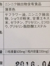 サフラワー油、ニンニク抽出物、ショウガ粉末、甘草エキス末、ゼラチン、グリセリン、ミツロウ、グリセリン脂肪酸エステル