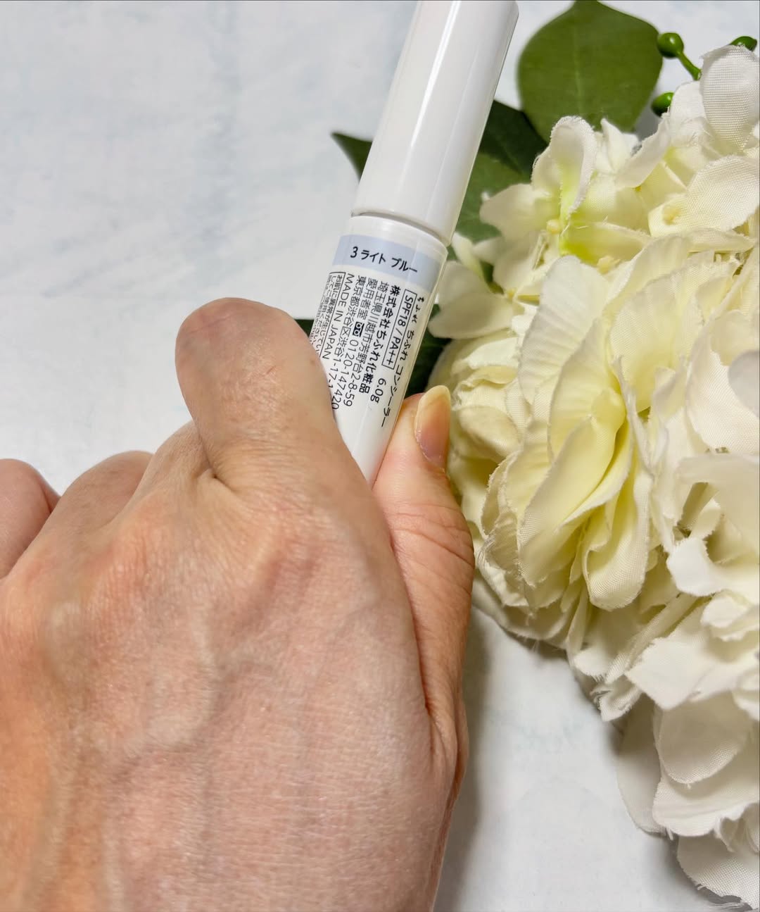 . ちふれさまの新色コンシーラーをお試ししました✨ ナチュラルな透明感をかなえてくれる 寒色系の3 ライト ブルー🩵 リキッドタイプなので使いやすいです。 私はリキッドファンデーションの前に使用しました。 乾燥肌なのですが、保湿成分が配合されているからか乾燥は気になりませんでした😊 パールが配合なので厚塗り感もなく自然にお肌に馴染んでくれて透明感を出してくれるのが嬉しい✨ すっかりお気に入りになりました🥰 おすすめです❣️ #PR #ちふれ化粧品 #ちふれ #CHIFURE #コンシーラー #寒色系 #新色 #monipla #japanorganic_fan