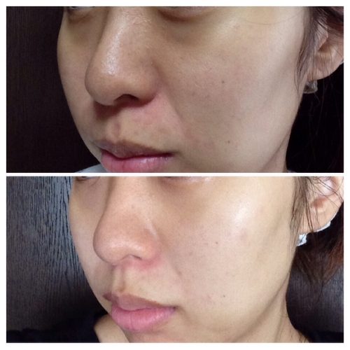 すごい!変化がわかって嬉しいです♪ 気になっていたほうれい線が薄くなり、フェイスラインや頬の位置、目の下のハリが明らかに変わりました\(^o^)/ リフトアップしたお陰で毛穴もキュッとなったかな くすみも取れて大満足! 無くなったらリピしたいです♥︎ 2014/10/10