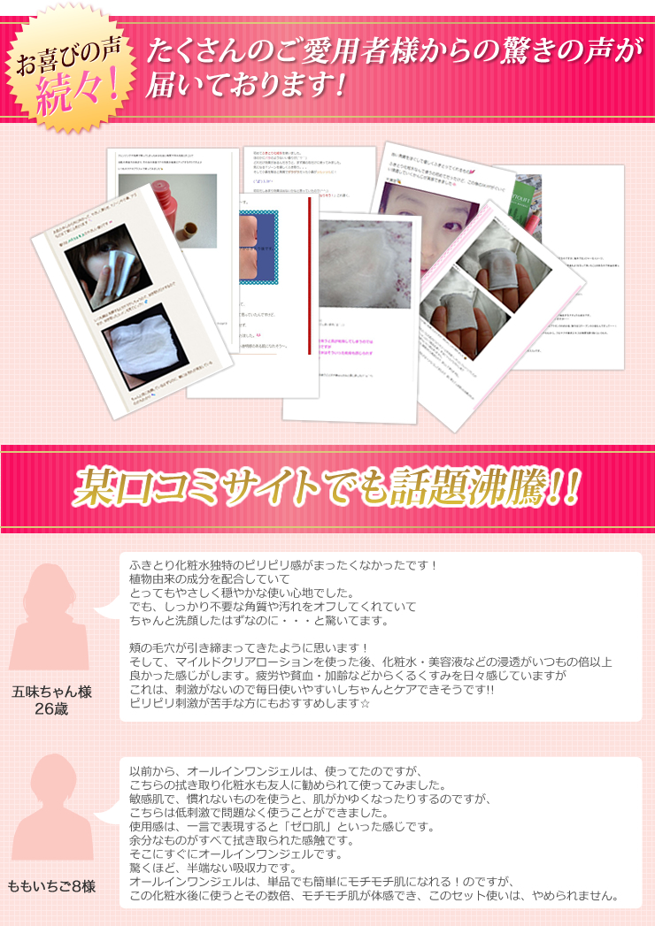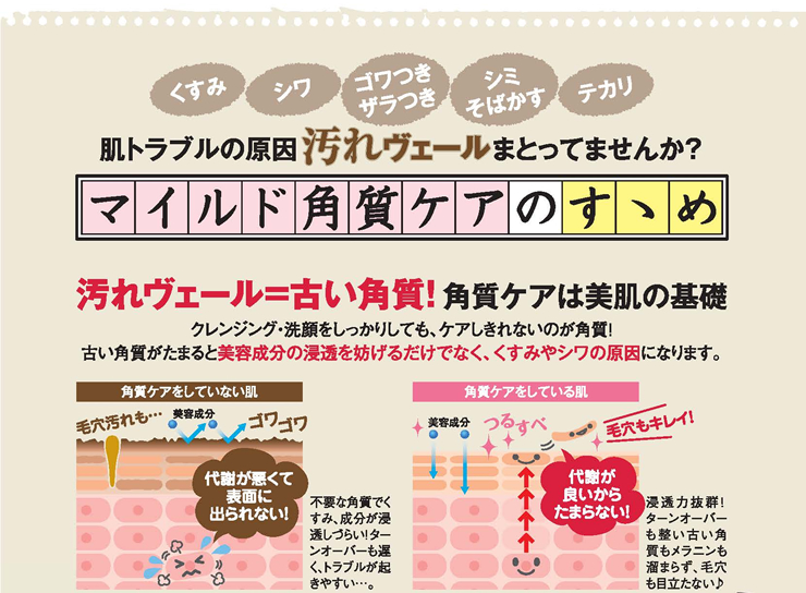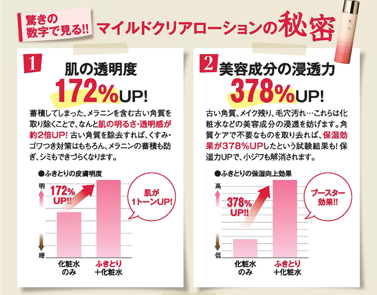 いつものケアの効果が格段に上がります!同じクリームを使ったと思えないくらい、肌に浸透します。今まできちんとふき取っていなかったのがもったいないくらい。ふき取って肌をきちんと整えるって大切なことなんですね!