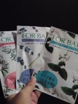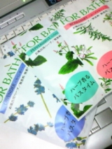 日本緑茶センター株式会社さんより「フォアバス」を頂きました! お風呂用ハーブです♪ 3種類 ラベンダーローズマリーペパーミント 中は袋になっていてお風呂にそのまま入れて使います お湯の色が変わる事はなくて、とにかくバスルームがハーブ!! っていう…香りいっぱいになります 本当に… 2011/08/22