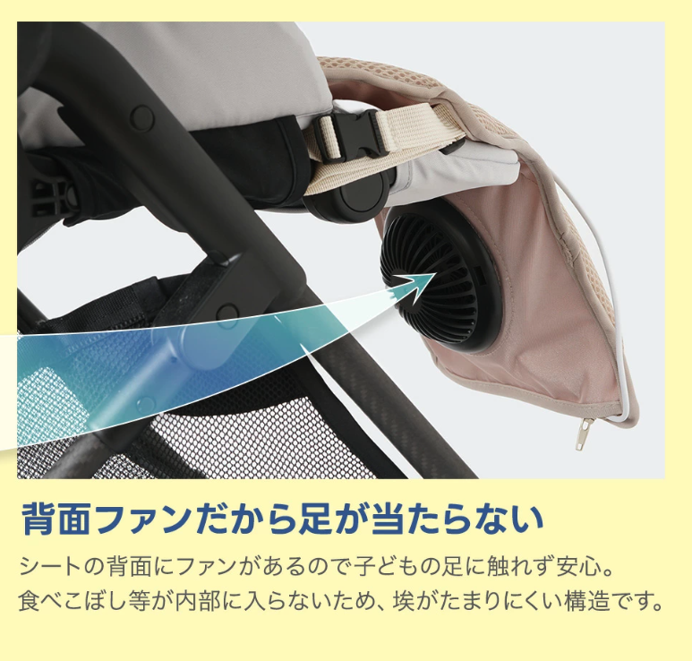 - 見た目フツー、実は中にファンがあるベビーカーシート