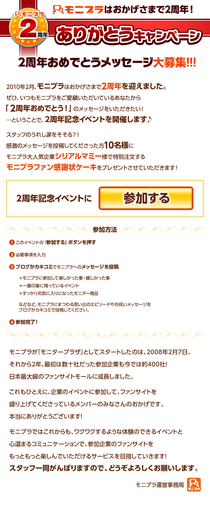 モニプラさんが2周年経ちました おめでとうございます!! 私がモニプラさんにお世話になったのはとある理由からでした モニプラさんのおかげで前に進めたといってもいいぐらい そんな感謝の気持ちを伝えたら感謝状ケーキを頂ける事に! ありがとうございます!! 見て下さい!本当に… 2010/03/15