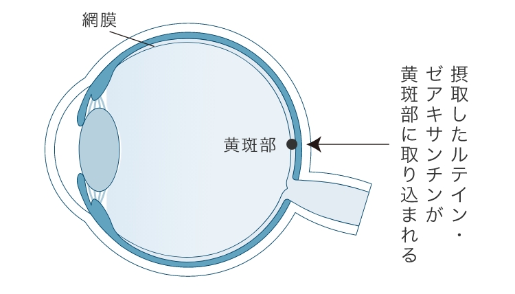 黄斑部に取り込まれたルテイン・ゼアキサンチンによって