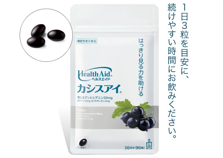 明るいところでも暗いところでもはっきり見たい方に『ヘルスエイド カシスアイ』(機能性表示食品)