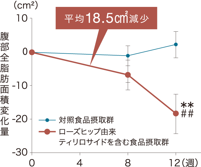 ※12週間にわたる試験の結果、ローズヒップ由来ティリロサイドを含む