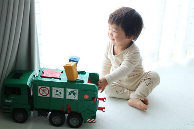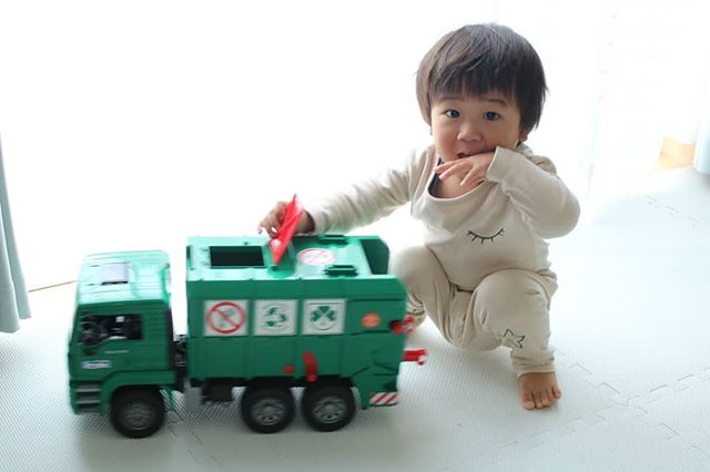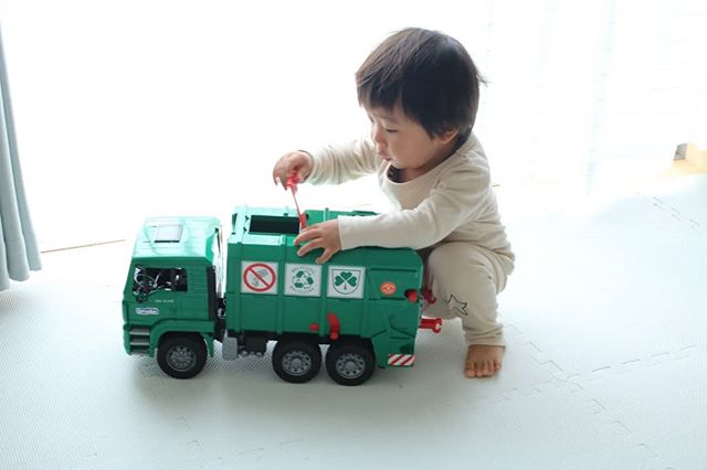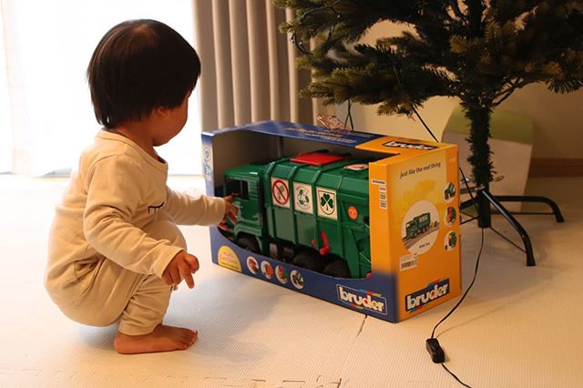 立て続け投稿ごめんなさい🙏(時間あるときにまとめちゃう🤗) . 先日息子に一足早くXmasプレゼントが届きました🎁 . . ドイツ発『ブルーダー社』のはたらくくるまの知育玩具の『MANごみ収集車♥️ @bruder.jobinternational . 16分の1の大きさのスケールになった玩具で、より本物らしい玩具です!. . 何より私はびっくりしました。16分の1のスケールのおもちゃだけど、、めっちゃでかい!!笑 . . 海外のゴミ収集車のデカさにびっくりしました。むしろ実物大も母はみたい笑 . ゴミ!って言葉は教えてないのに、気づけば『ゴミ』って単語を覚えてポイっと捨てるようになった息子さん。 . 可愛いサイズのゴミ箱2つも付属されてるので、そのゴミ箱の中にアンパン○ン入れたり、車の中に気づけばパズルめちゃ突っ込んで捨てられてました笑🤣 . 写真は朝寝起き早々プレゼントしたときの写真で、息子さんはパジャマ姿なんだけど、車に興味津々!! . すっごく喜んで、家中走らせたり、車の仕組みをガチャガチャ動かして見てました🤭 . @bruder.jobinternational 様では色んな働く車を取り扱ってます♥ . #ブルーダー #bruder #おもちゃ #こども #はたらくくるま #プレゼント #ギフト #monipla #jobinternational_fan #赤ちゃんのいる暮らし#赤ちゃんのいる生活#誕生日プレゼント#プレゼント#おもちゃ#babytoys#kidstoys#育児#知育グッズ#子育て#オモチャ#車#トイ#ママリ#ママノコ#ベビフル#1歳児#東京ママ#成長記録#クリスマスプレゼント#クリスマスツリー