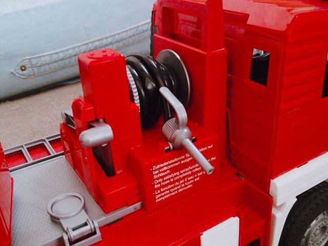 サイレンが鳴るのは当たり前だけど、貯水タンクがあって放水出来るし、車の先端が倒れて、エンジン部分を見れるし、はしごの作りもちゃんとしててビックリ😯!! 長男は、届いてから寝るまでずッーとイジってるし、今朝も☀起きてすぐ遊びだす👦♥ 相当気に入ったようです✨