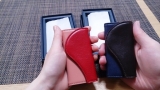 名刺入れは13色の牛本革から5箇所、コインケースは4箇所のカラーカスタマイズが可能。 本革ならではのなめらかな触り心地も特徴です。
