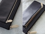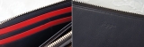 通常のラウンドファスナーの財布より、ワンアクション少なく開閉できるのがとても便利。 ファスナーを開くと、中身が一目でわかるように設計されています。小銭入れもあえてファスナーをつけておらず、スムーズに会計を済ますことが可能。(小銭は飛び出しません。)