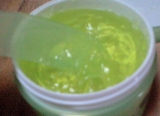 緑色の透明ジェリーで、ぷるぷるしたテクスチャーとともに