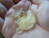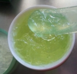 緑色の透明ジェリーで、ぷるぷるしたテクスチャーとともに