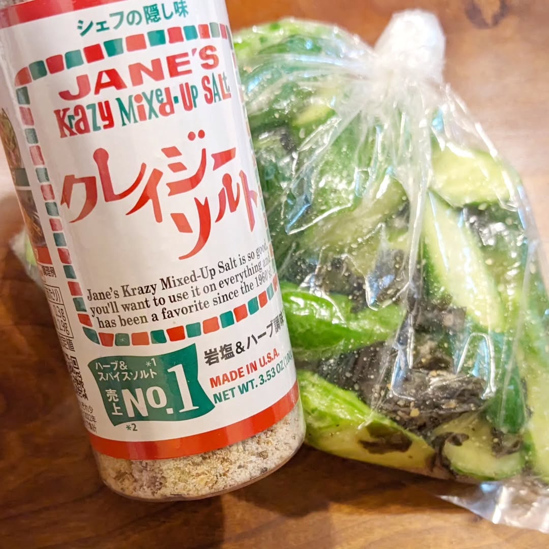 クレイジーソルトできゅうりとわかめの漬物! きゅうりとわかめに、クレイジーソルトをふりかけてもみもみ。 調味料も洗い物も少ないから楽チン♪ #PR #日本緑茶センター株式会社 #クレイジーソルト #monipla #jpgreentea_fan