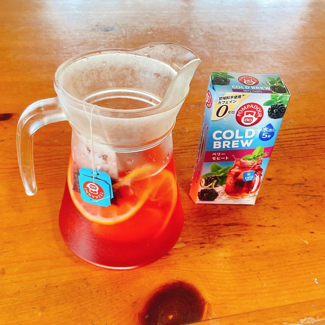 ドイツの老舗ハーブティーブランド「ポンパドール」✨ 「ポンパドール」の水出しフルーツハーブティー 「コールドブリュー ピーチ&パッションフルーツ」🩵 「コールドブリュー ベリー モヒート」🩵 これからの暑い季節にぴったりなすっきりと爽やかな飲み心地のフルーツハーブティー。 カフェインゼロで甘味料不使用です。 色あざやかでフレッシュなフルーツハーブティーのパッケージが目をひきます。 8ティーバッグ入りで250mlの水出しで5分待つだけで出来上がり♪ 作るのに時間がかからず飲みたいときにすぐにおいしいフルーツハーブティーが作れるのがうれしいです。 「コールドブリュー ベリー モヒート」は赤色が濃い目。 甘酸っぱいベリーと爽やかなミントがさわやかで酸味が強めです🩵 「ピーチ&パッションフルーツ」」はほんのり甘いピーチの香りとパッションフルーツの爽やかな酸味。 さわやかですが、酸味が少なくほんのり甘味があってとても飲みやすいです😊 どちらも甘酸っぱくてさわやかなフルーツの風味でとてもおいしいです🩷 お口も心もリフレッシュするよ! 今回は西伊豆で購入したハニーレモンを入れて作ってみました❣️ フレッシュ感がマシマシで豪華でおいしくできました🎵 いろんなフルーツと合わせて飲んでみたいな🎵 #PR #日本緑茶センター株式会社 #ポンパドールハーブティー #コールドブリュー #monipla #jpgreentea_fan