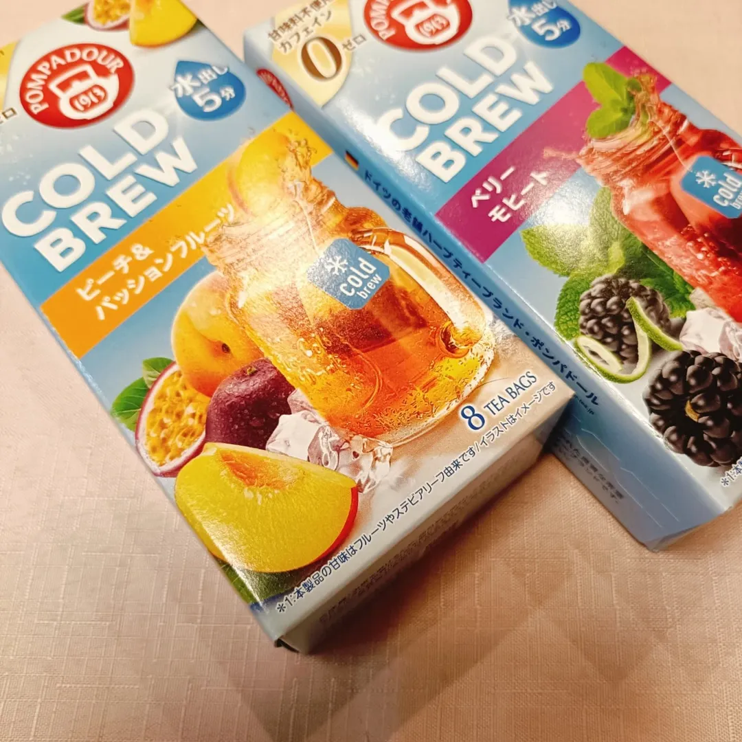 #PR @monipla_official 様より商品提供いただきました。 水出しわずか5分! ・フルーティーな味で、炭酸割りやサングリアなどアレンジがしやすい。 ・カフェインゼロのため、飲む時間を選ばずに楽しむことができる。 ・自然のハーブやフルーツからうまれた鮮やかで美しい色合い。 ・個包装だから風味長持ち。 今回は、初夏の爽やかなティータイムを楽しめる2種類をプレゼントいたします!! ほんのり甘いピーチの香りとパッションフルーツの爽やかな酸味のピーチ&パッションフルーツ 甘酸っぱいベリーと爽やかなミントが香るベリー モヒート どちらも美味しくて、氷を多く入れた時は濃いめで作るといいです 夏が来た! と感じる2つの味!! 美味しいおうちカフェになりました♡ @monipla_official #PR #日本緑茶センター株式会社 #ポンパドールハーブティー #コールドブリュー #monipla #jpgreentea_fan #空の当選報告🤭 #空のおうちカフェ #おうちカフェ #ハーブティー