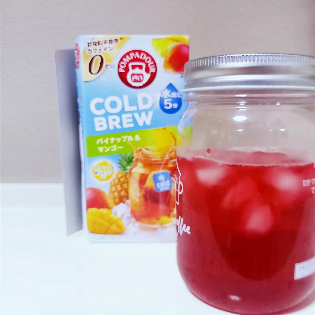ポンパドールの水出しハーブティー「コールドブリュー」 🍓ストロベリー&オレンジ 8袋入り 🍍パイナップル&マンゴー 8袋入り 気に入ったポイントは💓 ✅カフェイン0で夜にも飲める ✅甘味料不使用で糖質制限 ✅水出し5分で鮮やかな色に ✅ティーバッグだから好きな濃さに調整できる カロリー&糖質制限中に普段飲んでいるものはコーヒー、麦茶、紅茶…爽やかな他の飲み物を探していた時、ポンパドールに出会えました。 ポンパドールの紅茶ベースのティーバッグは店頭で見かけますが、ハーブティー&カフェイン0のものがあったとは!私にピッタリ♪ ステビアリーフが甘さを感じさせてくれます。砂糖とは異なる甘味なので、レモン果汁を多めに入れて好みの味にしています。 熱中症対策におすすめ 鮮やかな濃い色なので、透明ボトルに入れるのが良いですよ☺️ #PR #日本緑茶センター株式会社 #ポンパドールハーブティー #コールドブリュー #monipla #jpgreentea_fan