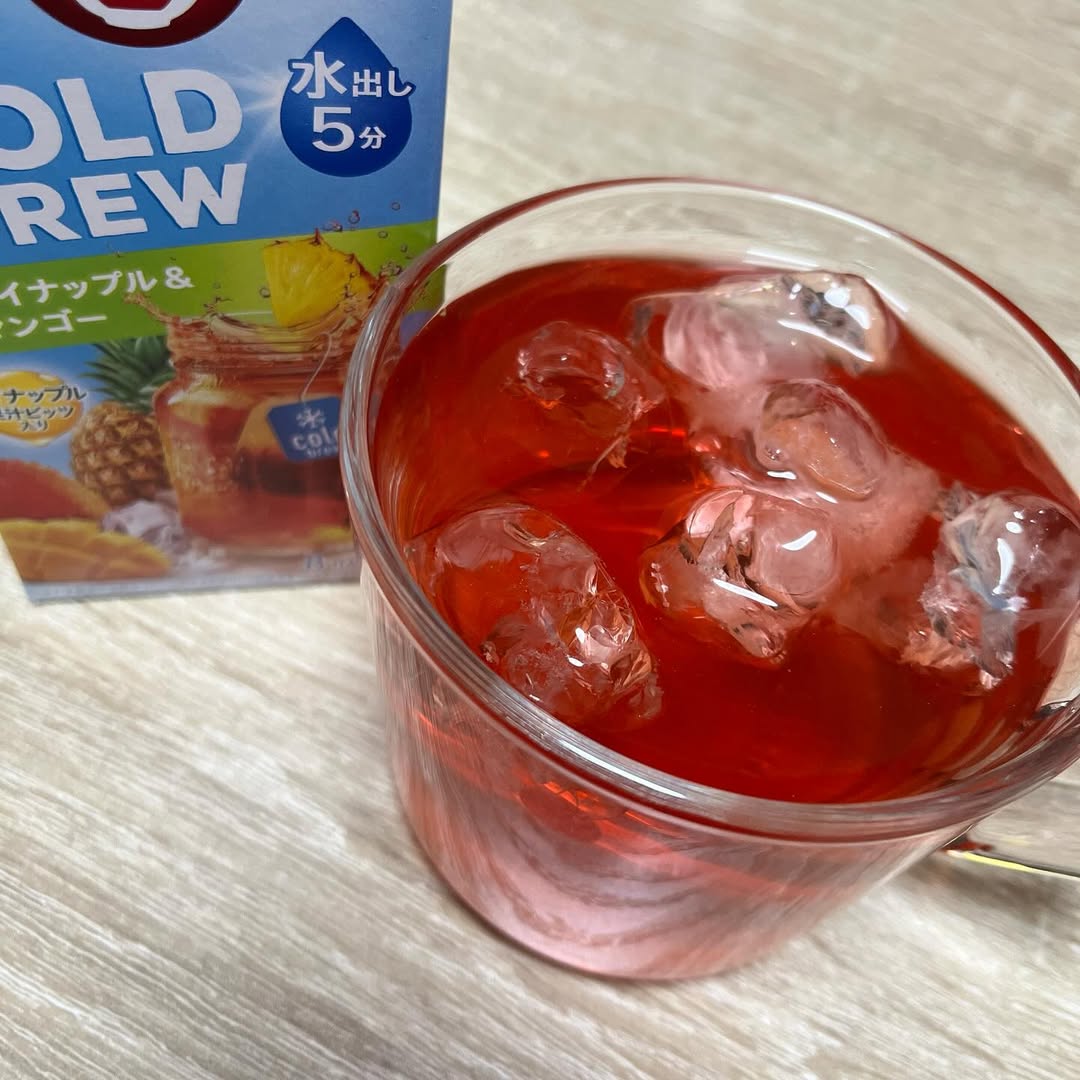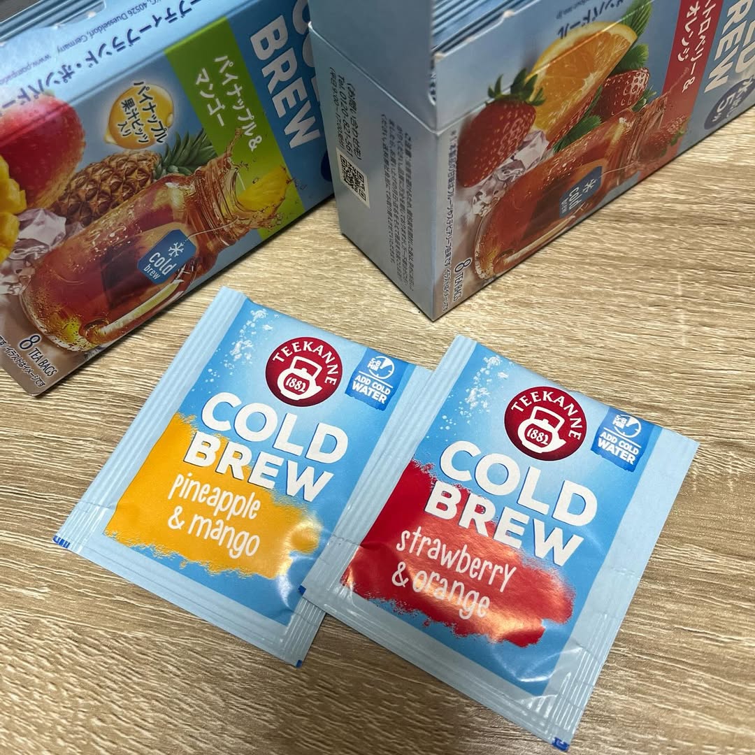 【2種類 飲み比べ!】 コールドブリュー <ストロベリー&オレンジ/パイナップル&マンゴー> お試ししました✨ ポンパドールブランドは、1913年ドイツ🇩🇪に誕生し、専門家により選び抜かれた良質な茶葉を提供し続けて、100年の時を超え世界中で愛飲されているハーブティーブランドです😊 水出し5分で、美味しいハーブティーが飲める🙌 1ティーバッグを250mlの水に入れて、常温で5分待つだけで完成🥤 カフェインゼロでフルーティーな味わい😊 カフェインゼロなので、カフェインを控えたい方や控えたいタイミングを気にせず夜でも飲めるところが嬉しい🙌 ストロベリー&オレンジ 👉ストロベリー🍓とオレンジ🍊がほんのり甘酸っぱい✨ パイナップル&マンゴー 👉南国を思わせるパイナップル🍍の香りとマンゴー🥭のジューシーな甘さ✨ どちらも、ほんのりとした甘さがあります。 また、鮮やかな色が美しい🩷🩵 炭酸割りやサングリアなど、飲み方が選べるところも良いですね👍 私は、少し少なめの水で水出しをして、氷を入れて飲むのが好きです😍 #PR #日本緑茶センター株式会社 #ポンパドールハーブティー #コールドブリュー #monipla #jpgreentea_fan