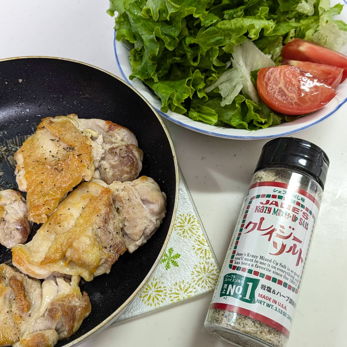 【クレイジーソルト】 たくさん種類のあるクレイジーソルトシリーズの中、スタンダードタイプがこの商品。 岩塩ベースに、ハーブ&スパイスがバランスよく配合されてて一発で味が決まります。 一番便利だと思ったのは、肉料理。 特に鶏肉との相性抜群で家族からも好評でした。 鶏モモを皮面をパリッと焼いたら、裏返してクレイジーソルトを振りかけてフタをして蒸し焼きにするだけ! 忙しい日の夕食に超オススメです。 どれにしようか迷ったら、まずこのスタンダードタイプから使ってみて下さい(*^^)v 無添加なのも推せるポイントです。 #PR #日本緑茶センター株式会社 #クレイジーソルト #monipla #jpgreentea_fan